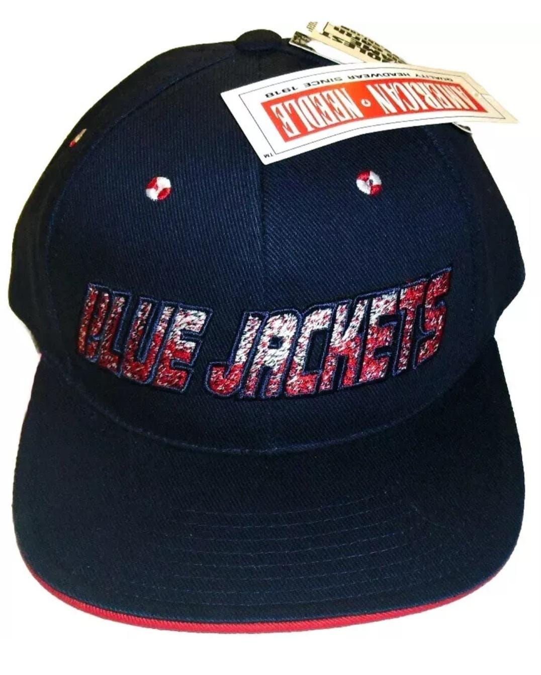 Columbus Blue Jackets 90s Vintage Snapback hat. This is Brand New with Tags. The front has the embroidered Blue Jackets text logo on the front of it. It is made of wool material. Made by American Needle.