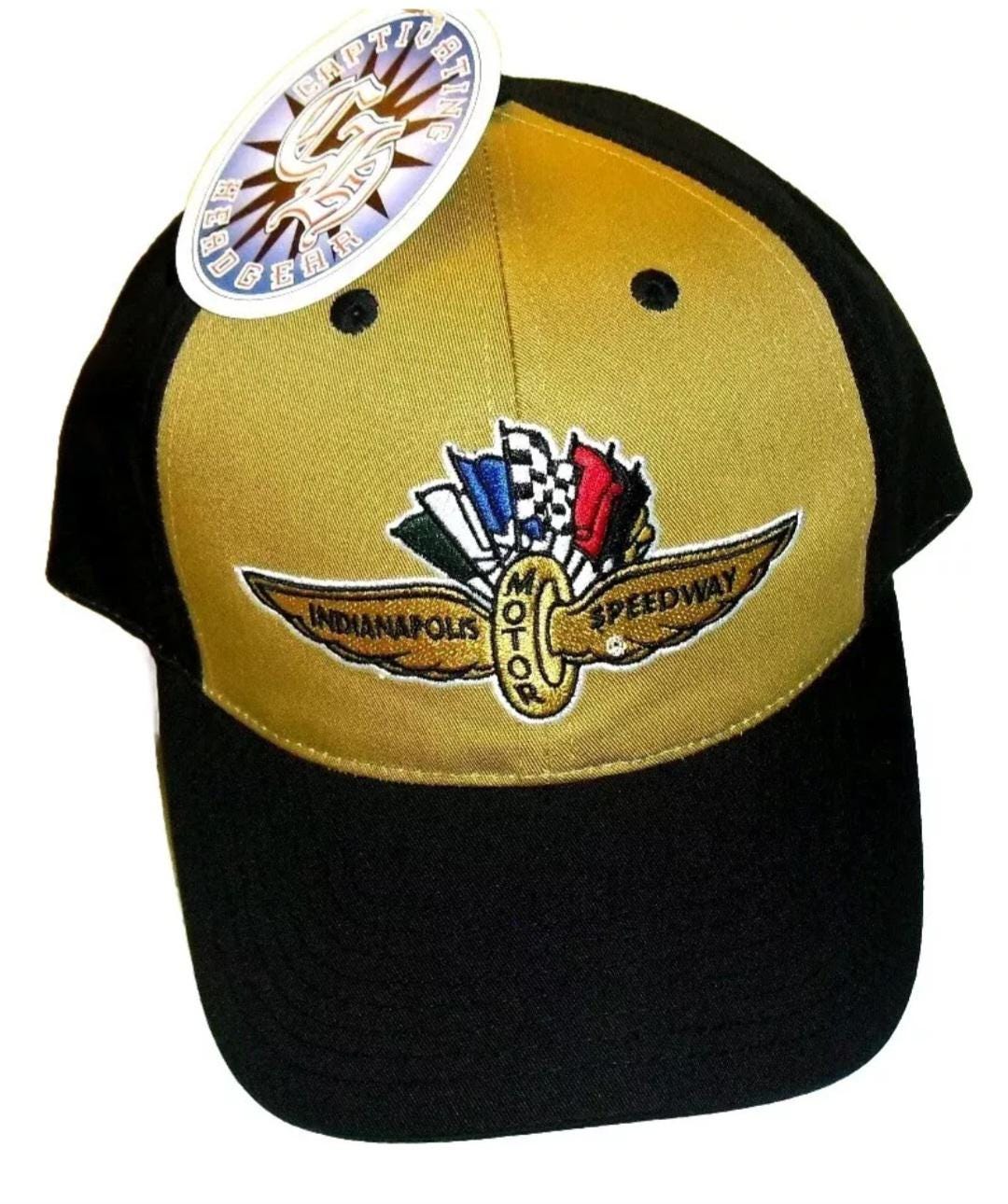 Brand New with tags Indianapolis Motor Speedway Mens Strapback hat. Made of cotton material. The hat is all black.