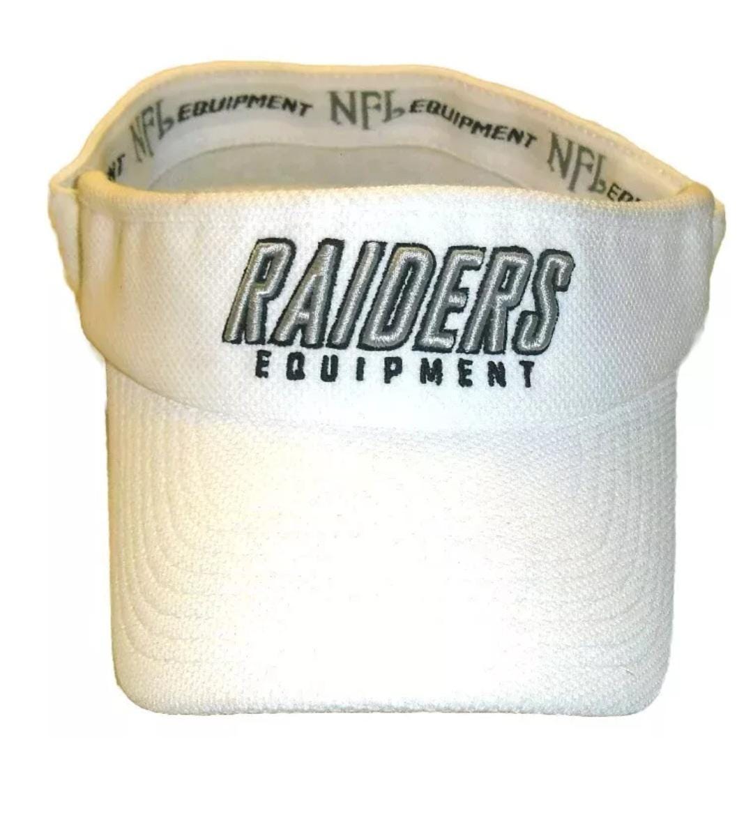 Brand New Raiders Equipment One Size Fits All Adult visor hat. The front hat the embroidered Raiders Equipment logo on it. Made of polyester material. Made by Reebok.